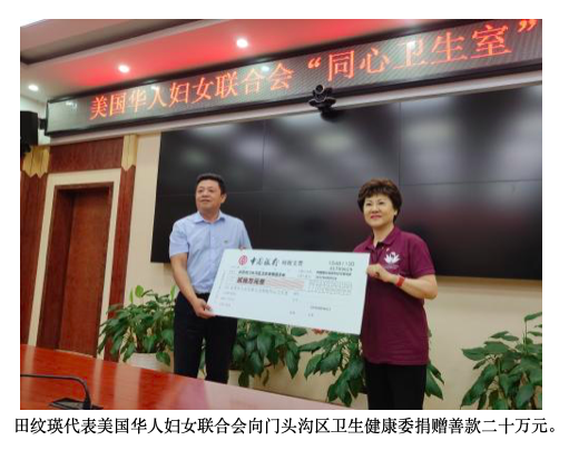 中新网北京6月21日电 (记者 吴侃)“为乡村卫生室建设贡献绵薄之力,略表我们海外华侨华人的心意。”美国华人妇女联合会会长田纹瑛在门头沟“同心卫生室”捐赠仪式上如是表示。