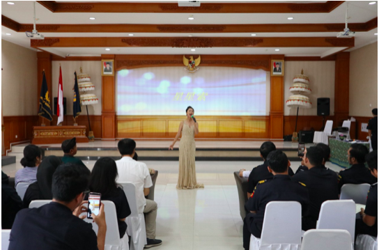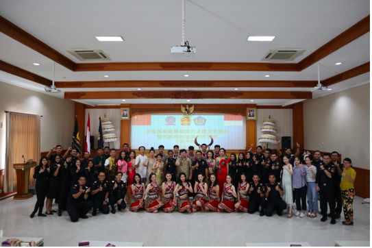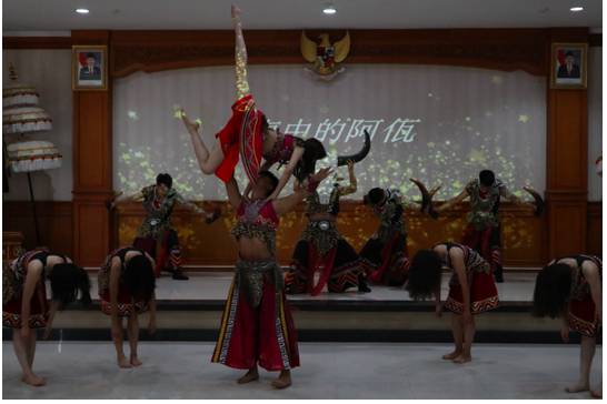 活动现场,陈副总为学员们颁发了结业证书。大家用一曲改编版《海关欢迎你》展示了近三个月的学习成果。正在巴厘岛参加第41届巴厘艺术节的云南艺术团亦为大家带了精彩的中国少数民族歌舞和器乐表演,第一次近距离感受中国传统艺术风采,大家兴奋不已,纷纷拿出手机记录下精彩瞬间。
