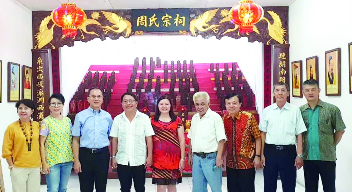 (本报讯)2019年6月20日(星期四)中午、印尼雅加达周氏宗亲会主席周沅瑶、秘书周国明、总务部周锡珊、福利部周天从,联络部周孙毅、妇女部周妤娟、周巧花等、在雅加达北区Jl. PluitKarang Selatan No.24的会所、热烈欢迎马来西亚民都鲁周氏公会主席周己富及夫人、双方就近年来的两地周氏文化发展亲切交流。