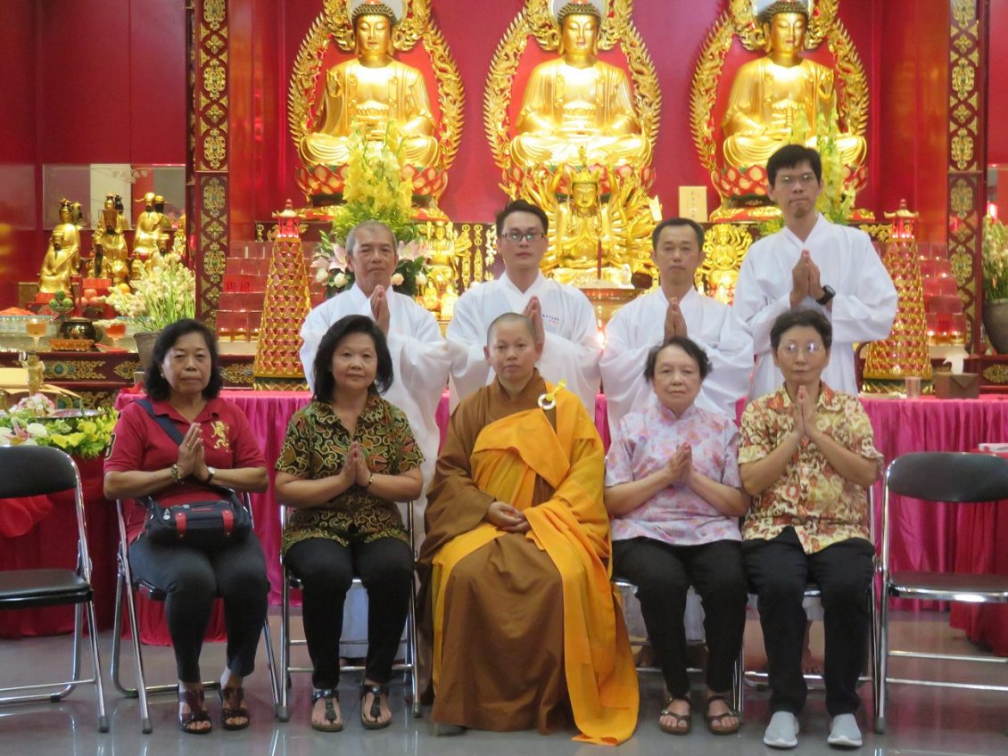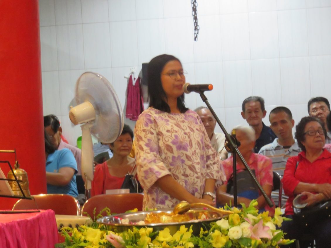 代表本堂住持阿艳姊讲话:奋奋 ,司仪:坚坚。住持阿艳,浴佛节筹委主任:阿云,现场筹划与执行主任:阿桃。理事:唐京贤,陈上鑫,陈集虔,饶欣信,林德焕。顾问:MBI JABAR Suherman(张进亮)。