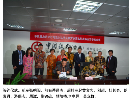 近年来,中国银行雅加达分行在支持华文教育以及印尼学生留学中国方面,开展了一系列成效显著的工作,如支持参加雅协自2017年开始创新举办的汉考及留学就职展、中国留学服务中心每年一度在印尼举办的留学中国教育展、印尼中国留学生会年会及招聘会,与对外经贸大学联合举办面向印尼留学生的专场校园招聘会,支持印尼的优质留学中介开展中国留学教育展,支持优秀的三语学校开展中国文化相关活动等等。此次与雅协合作,中国银行雅加达分行将进一步践行社会责任,为中印尼教育文化交流,华文教育推广做出贡献。(铭华报道)