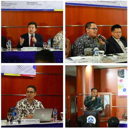 中国驻东盟大使黄溪连出席研讨会并致辞。中国国际问题研究院常务副院长阮宗泽做主旨演讲,中国人民大学重阳金融研究院副研究员王鹏、印尼战略与国际问题研究中心专家法贾尔、印尼大学国际关系学院专家耶里米亚、哈比比中心副主任哈桑等先后发言。菲律宾常驻东盟代表诺埃尔大使、东盟其他国家常驻代表及有关智库学者和新闻媒体等约100人与会。