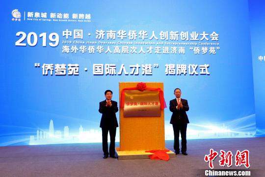 2019中国·济南华侨华人创新创业大会”会期三天。济南“侨梦苑”国际人才港同日揭牌成立。(完)