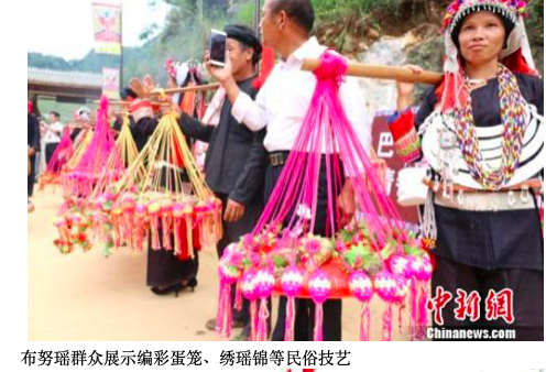 当天活动现场,布努瑶群众还展示编彩蛋笼、绣瑶锦等民俗技艺,并邀请来宾参与打铜鼓、斗鸟、赛马等传统民俗活动。(完)