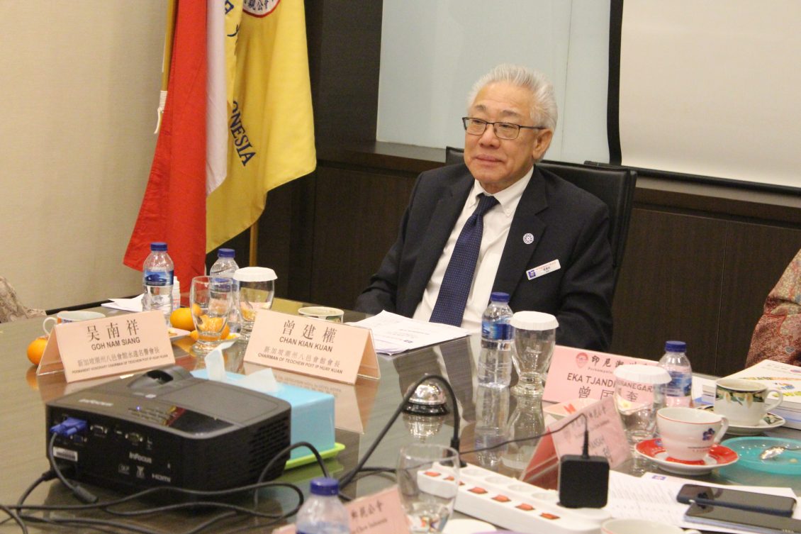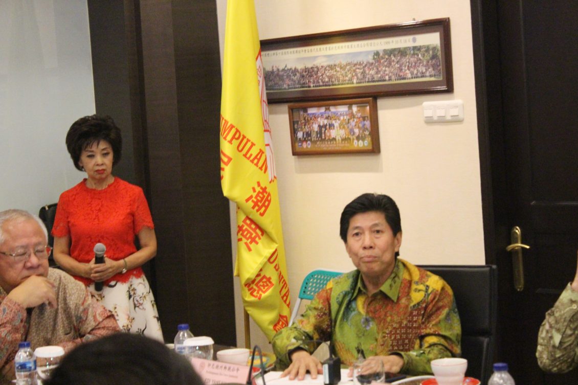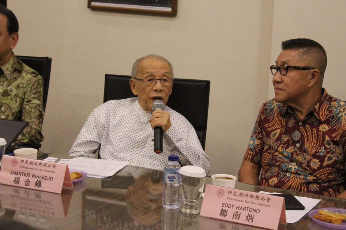印尼潮州总会即印尼潮州乡亲公会已95高龄的杨金锋长老讲述潮人乡亲见面亲上亲,对新加坡潮州八邑会馆代表团在曾建权会长率团的到来甚感荣幸。