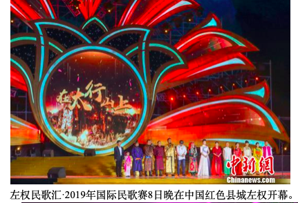 当晚,左权民歌汇·2019年国际民歌赛开幕式以《在太行山上》为主题,通过大型民歌演唱会的形式呈现,分《太行的歌》、《英雄的歌》和《家园的歌》三个乐章。其中,《会哥哥》《亲疙蛋下河洗衣裳》《大红公鸡毛腿腿》等一首首山西民歌接连上演。