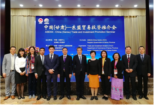 2019年7月4日,由中国—东盟中心、甘肃省人民政府共同主办,甘肃省商务厅、甘肃省经济合作局等承办的中国(甘肃)—东盟贸易投资推介会在兰州市成功举办。甘肃省副省长余建、中国—东盟中心秘书长陈德海、东盟国家驻华使馆官员以及甘肃省各地州和企业代表等120余人出席活动。