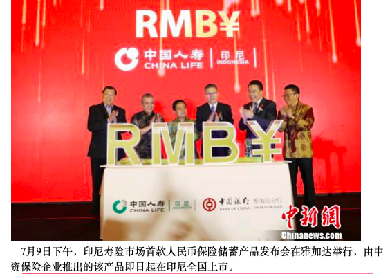 中新网雅加达7月9日电 (记者 林永传)印尼寿险市场首款人民币保险储蓄产品发布会9日下午在雅加达举行。由中资保险企业推出的该产品即日起在印尼全国上市。