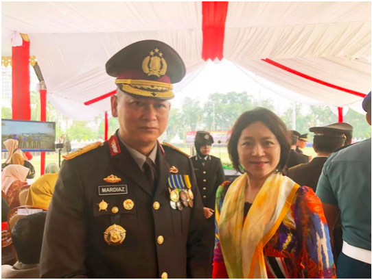 活动期间,邱总领事同苏北省警察厅副厅长马尔迪亚兹进行友好交谈,对印尼国家警察建立73周年表示祝贺,并感谢省警察厅长期以来对总领馆工作的支持。邱总领事表示,近年来,到苏北省旅游和经商的中国公民不断增加,希望今后与省警察厅加强沟通与合作,以便更好地保障中国公民在海外的安全。马尔迪亚兹副厅长欢迎邱总领事到棉兰履新,表示很高兴看到印尼与中国关系不断发展,愿与总领事馆保持沟通联系,及时提供相关协助。