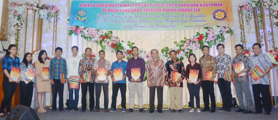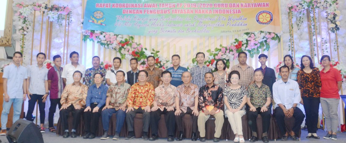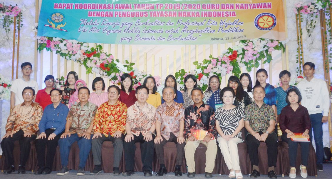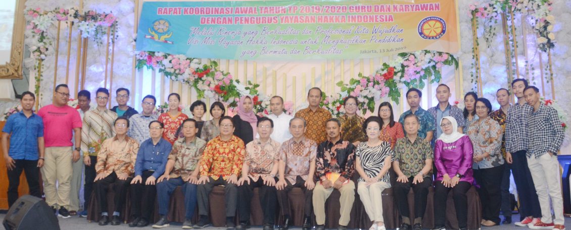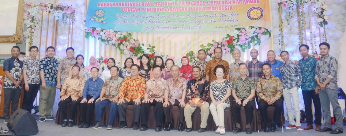 (雅加达讯)雅加达客属基金联谊会崇德三语学校教育委员会主席田锦堂,委员廖幼青、池美萍、江淼成、廖世锦、叶纪鳌及教育主任Abdullah Siroj,幼稚园、小学、初中、高中校长与教职员及保安和工人近150人,雅加达客属联谊会主席张和然及秘书长杨健昌,7月13日(週六)上午10时在雅加达华园酒楼出席2019/2020学年度理事及教职员统筹会议及聚餐联欢。
