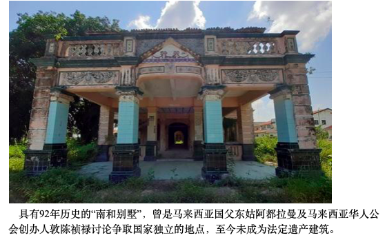 2017年1月,马六甲州时任首长依德利斯曾公开呼吁保留南和别墅,并表示政府希望对其原貌进行恢复,或有打算进一步美化及发展为历史馆。(范纯玮)