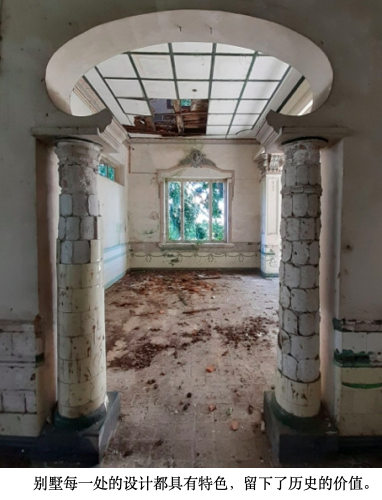 踏入别墅走廊,可看到原有的意大利、英国及华人娘惹文化的瓷砖被人有计划性地挖走,更遑论具有历史价值的其他饰品,内部可谓空空如也,只有坚固的建筑轮廓驻守原地。古宅虽然已经残旧,却没有满地垃圾或有人侵入霸占的迹象,反而像是有人定期打理一般,惟残破的天花板和被盗取一空的瓷砖,掩饰不了它被遗忘在时代洪流而香消玉殒的苍凉。