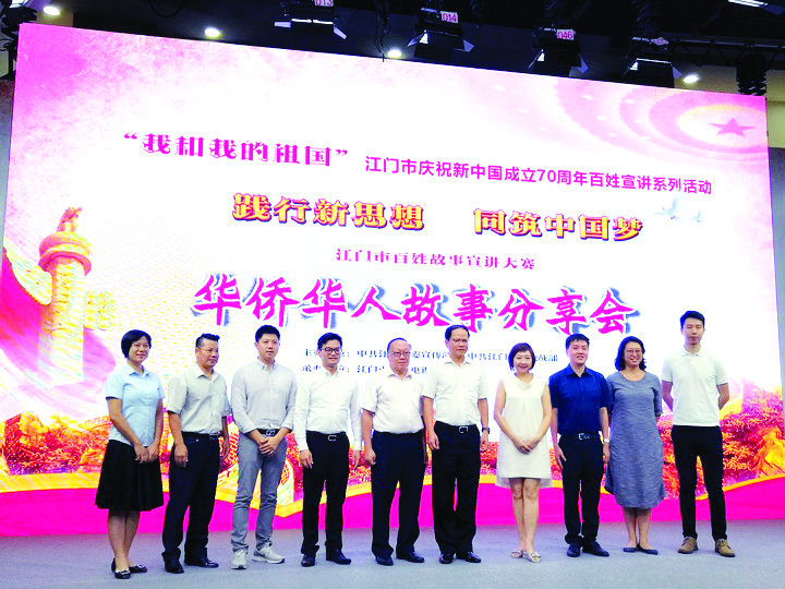 7月8日,由江门市委宣传部、江门市委统战部主办,江门广播电视台承办的“我和我的祖国”江门百姓故事宣讲暨华侨华人专场分享会在电视台一楼演播厅举行。