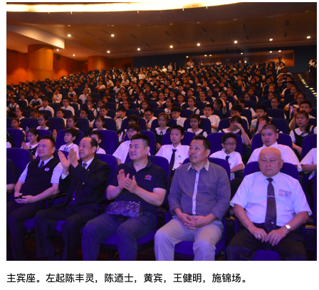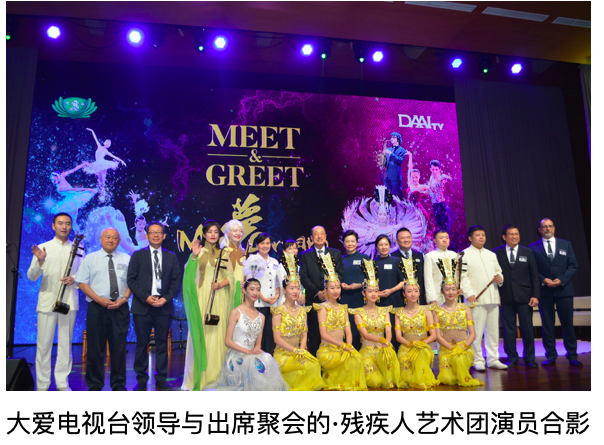 陈迺士致辞,他对代表团在大爱电视台成立12周年之际来到印尼三城市演出表示欢迎,并希望通过该演出展示了肢残人坚韧的生命力、永不放弃梦想与对和平的呼喊,从而將美展現給社會、將愛傳遞給人間、將和諧美好奉獻給世界。