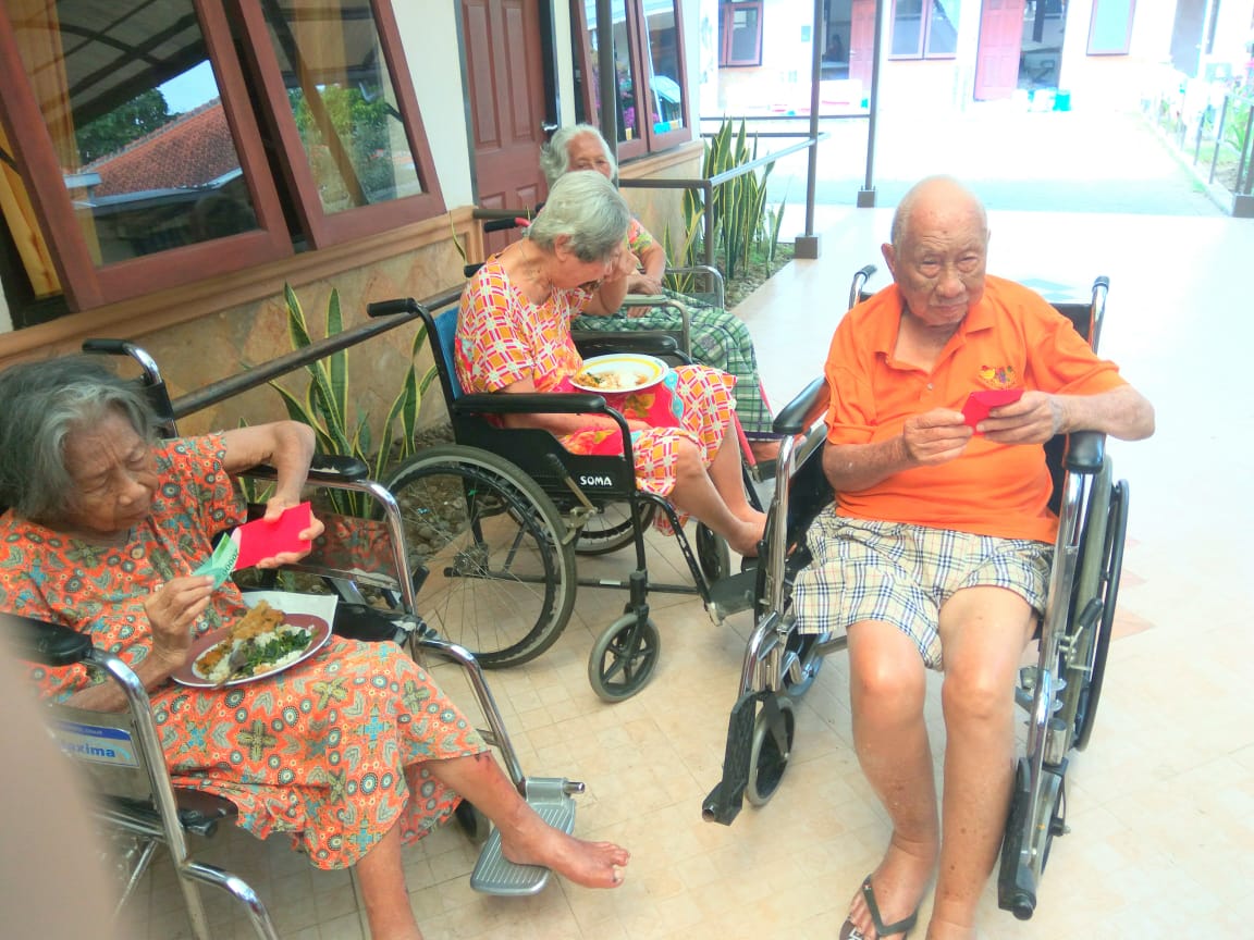 抵达时,泗水惠潮嘉一行人受到该负责人 Suster Clementine Misc 热烈欢迎,此养老院已有10多年了,目前收有68位老人,从60岁至年迈96岁。宗旨是 “ 给予乐龄人最好的服务、让老年人对生活有信心 ”。院内雇佣19个护士,数位保安,厨房管理,清洁工人等。除了准时的供应饮食外,还有定时的体健等。