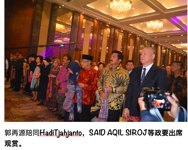 此外,当晚出席的除慈济基金会-印尼分会副执行主席郭再源,曾国奎,大爱电视台台长陈迺士,顾问施锦场,副台长林德明,刘鎱辉,总监陈丰灵等慈济领导外,印尼国民军总司令HadiTjahjanto,印尼伊斯兰教士联谊会(NU)总主席Prof DR KH. SAID AQIL SIROJ ,中国驻印尼大使肖千,冯慧兰,阿贡等政要莅临观赏。