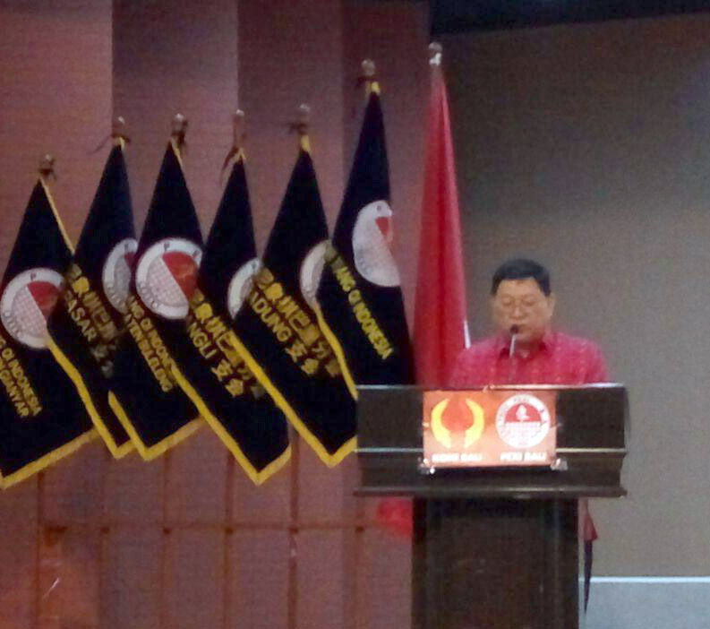 由印尼青年与体育部巴厘分局局长I Made Rentin 宣读了巴厘省长的致辞,热烈祝贺印尼象棋总会巴厘省分会2019-2023年理干事就职,希望能够发扬体育精神,推广即经济、群体性,又能磨炼精神和体质的象棋运动,让更多的巴厘人认识和喜爱,希望通过普及发展的模式,迈向新时代的巴厘,高举体育精神,为发展巴厘的体育事业做出贡献。