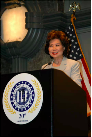 中国侨网7月30日电 据美国《美中报道》报道,美国交通部部长赵小兰于7月25日晚,在美国华盛顿应邀出席了第二十届国际领袖基金会周年庆暨2019领袖人物与商业峰会晚宴并发表主旨演讲。赵小兰部长表示,还在私营企业任职时,自己就与峰田部长(Norm Mineta)一起担任过国际领袖基金会的联合主席。过去20年,国际领袖基金会为美国主流社会的亚太裔年轻人在职业和个人领域发展中做出了巨大贡献。