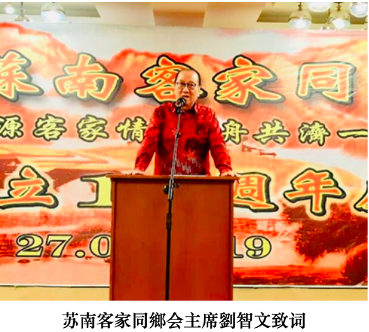晚会中劉智文主席报告领导第五屈理监事进入第二年以来的财经和福利和各部们的工作报告及进展,并且表明理监事仍剩一年期限内要把巨港苏南客家發揚光大更上一层楼,以陪育客家青年参加活动为目标,使之成为日后苏南客家的接班人。