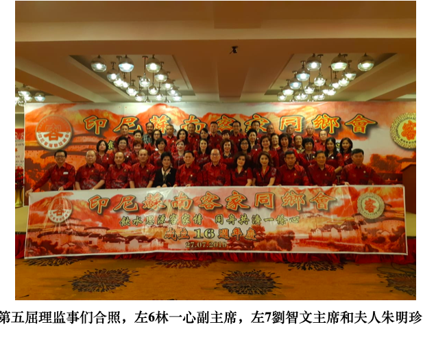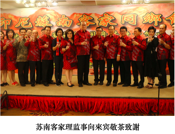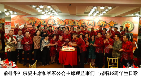 巨港苏南客家同郷会2019年7月27日晩上六時在巨港毫华餐厅隆重庆祝成立第16周年纪念晚会,全场 450名客家鄉䝨以及苏南华社宗親领导,芸林客家分会主席,苏南印华百家姓主席,多位巨港华社精英都拥耀参加,一团和气和团结詳和的气氛由苏南客家文娱部主任陳均云女士安排歌舞表演助兴进行,虽然菜色简单但来宾们都贊口不绝,深感欣慰。