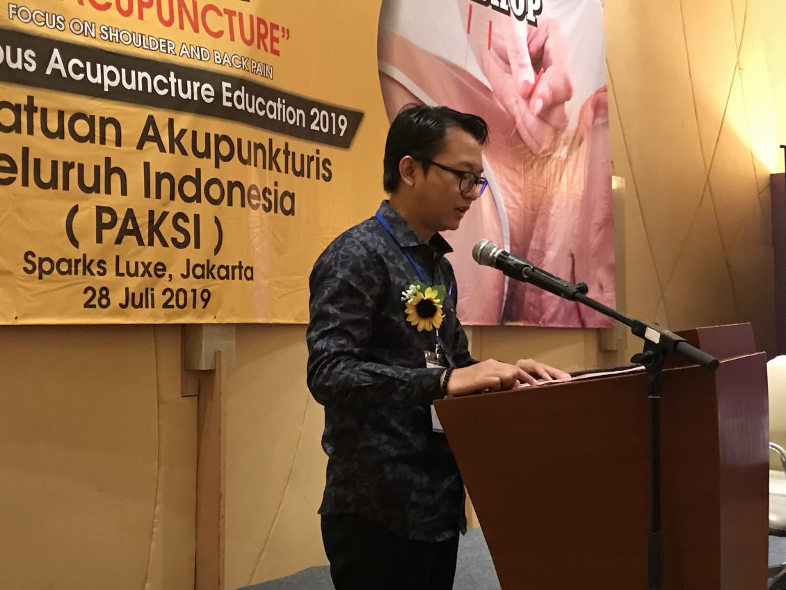 培训开始前,印尼教育部培训部主任代表Victor先生、印尼针灸、物理治疗总主席Jatmiko Rinto Wahyudi相继发言,盛赞全印尼针灸协会造福于社会大众,他们希望今后全印尼针灸协会给印尼社会的医疗作出更大的贡献。