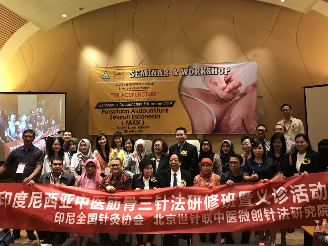 为了提高印度尼西亚针灸学术的运用和临床经验,全印尼针灸协会给分布印尼各地的针灸师们提供年度的培训座谈会。这次培训题为“中医筋骨三针疗法督脉经筋理疗临床应用”的培训托谈会。由吴汉卿教授主持。