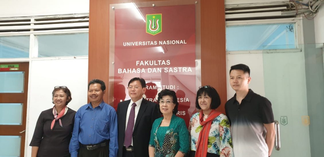 课题组于2019年7月22、23日莅临雅京参访国民大学与博修达大学展开相关调研,以了解、分析印尼最新外国投资政策与资投环境,探讨广西南宁与印尼各大城市间经贸合作现状及前景,通过专家学者间之交流探索,拓展课题研究之深广度;同时探讨广西大学与雅京两高校间文化教育方面之实际合作项目,为的是确保经贸交往活动畅通无阻,造福双方民生。此行获得国民大学印华文化研究中心孙爱玲的支持与协助,在其引领下,2019年7月22日,南宁市人民政府发展研究中心办公室主任李林琳与区域经济研究科副科长高琳,广西大学商学院教授及财务处处长秦建文教授,商学院博士生赵瑞娟副教授,中国—东盟研究院印尼所副所长韦宝毅,商学院博士生胡金城及东盟研究院印尼所研究助理蓝心辰,一行七人于上午九时半抵达雅加达南区国民大学务纳斯校园。