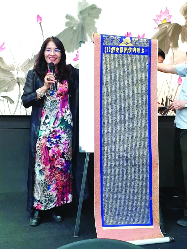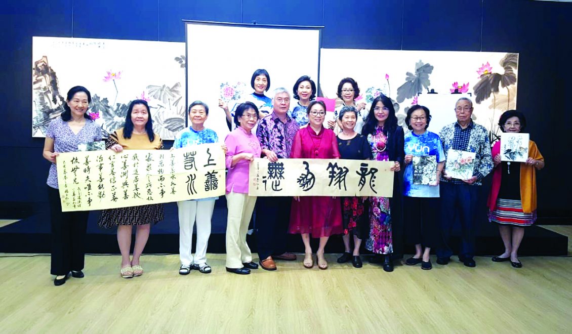 這次專題講座也得到僑委會的協助,第一次奉派出國來到印尼的僑務秘書許俊湧在致辭中感謝主人饒韻芝準備的場地和其他完善的設備,也有幸見到印尼許多對中華文化有高度興趣的僑胞,僑委會的宗旨就是服務華僑,他將盡一己所能,把印尼僑務做好。羅秋昭教授是語文系副教授退休,但是精力充沛的她卻又涉獵書畫,這一來就著迷了而一頭栽了進去,卻在新領域上發光發熱,譽享藝壇。她從各方面來探討國畫與書法的美。所謂真善美,就以美為最高境界,以真臻善,由善入美。無論做什麼事,要以感恩之心,認真之意,將每件事都完美地做好,做到自己感到滿意之後再找出可以改善的地方再作創新。這裡面牽涉到的學問就大了,實體的紙筆墨硯,表現的濃淡虛實,技藝的留白暈染,記號的題詞落款都是一個好作品所不可或缺的。李弘正理事長是印尼書藝協會的顧問,他是科班出身,教學方法精到,學生容易上手,他更以正道,正教,正見,正思四正法,來教導學生,把終生所學,傾囊相送。他的書法眾體皆能,又能融匯貫通,國畫山水花鳥皆備,在印尼的書畫研習班已經教了第七個年頭,如今更設立空中教學,把他的教學推廣到更多有志學習書畫的人群。他從他本身經驗出發,叫學習書畫的人一定要好好的臨貼臨畫,把前人名家的技法盡量吸收,然後在自己的領悟上,創立自己的風格,並多參加展覽,以便互相切磋,更上層樓。壓軸是由楊玉如講師主講,她七歲學書,一路都沒有落下過,所以在書法的技藝上有許多秘密武器,在她拿出壓箱底的作品時,少不了令人咋舌。除了纂隸楷行草之外,她的小楷是書中一絕。一幅以金字寫就的金剛經,已經令人看到她的功力和一絲不苟的精神,在看到她21公尺長的妙法蓮花經蠅頭小字長卷,這種體力,精神和書法的功力令人嘆為觀止。三位名家在接近4小時的座談會中都很投入,和來賓互動,最後並有作品相贈,皆大歡喜。(丘生)