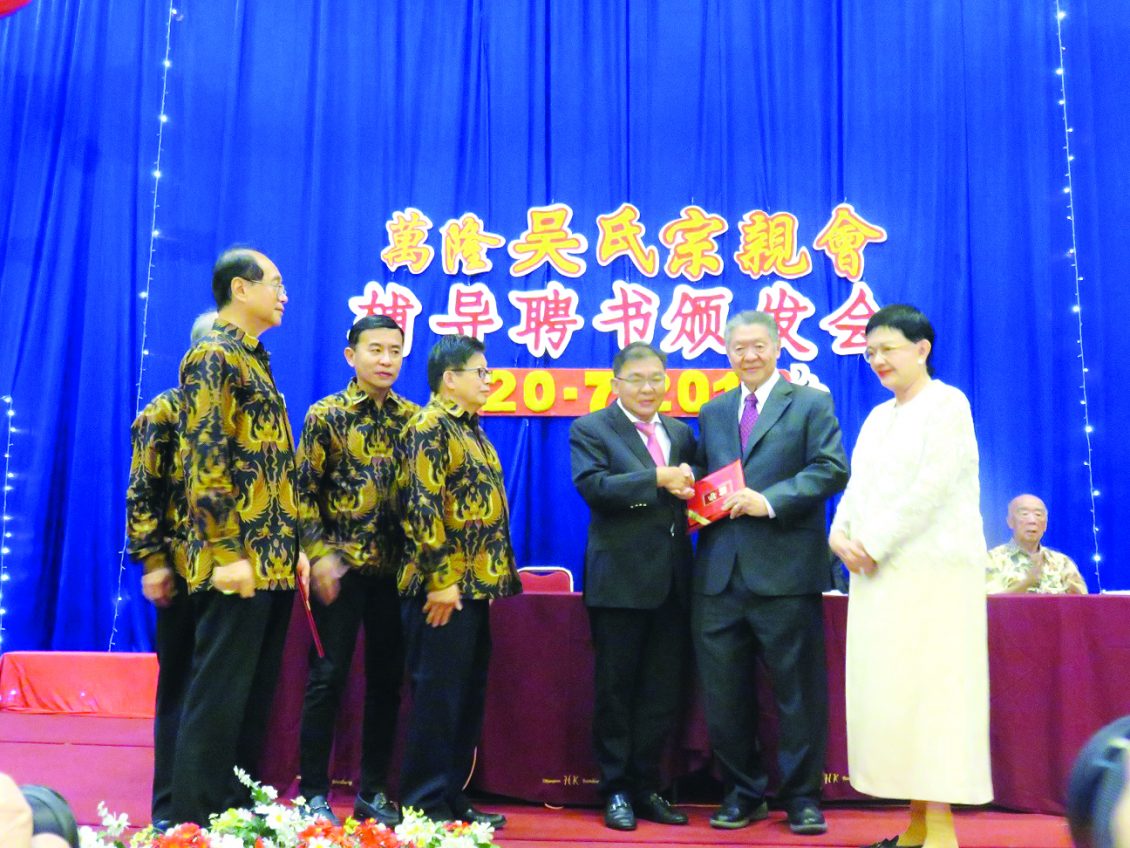 万隆吴氏宗亲会于7月20日上午迎来大喜日子。在万隆客属联谊会所礼堂举办聘请两位宗亲前辈担任辅导的盛会。