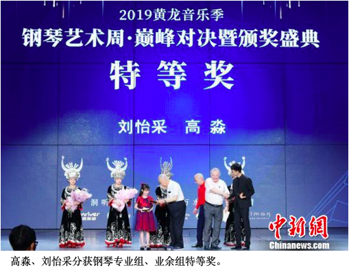 中新网张家界8月9日电(通讯员 李远明 吴勇兵)8月9日,伴随着悦耳的钢琴声,2019黄龙音乐季在张家界落幕。当天举行的2019黄龙音乐季·钢琴艺术周巅峰对决赛中,中国音乐学院学生高淼和9岁湖北女孩刘怡采分获专业组、业余组特等奖,各赢得50万元、10万元的艺术发展资助金。