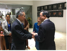 驻东盟大使黄溪连应邀出席活动并向东盟轮值主席国泰国外长敦和东盟秘书长林玉辉等东盟方致以祝贺,表示中方始终乐见和支持东盟的团结与发展,赞赏新大楼呈现的“对话”理念,期待以新大楼启用为契机,与东盟方一道秉持亚洲国家文明交流互鉴的传统文化和共同价值观,弘扬东亚合作的多边主义精神,充分发挥好“雅加达渠道”的作用,共同打造更高水平的中国-东盟战略伙伴关系,构建更为紧密的中国-东盟命运共同体。
