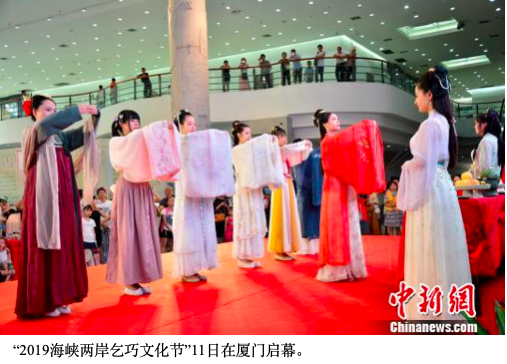 中新网厦门8月11日电 (杨伏山 黄荣亮)乞巧拜七姐、非遗匠心市集、诗词飞花令……以“爱在七夕·醉美生活”为主题的“2019海峡两岸乞巧文化节”,11日在厦门启幕。