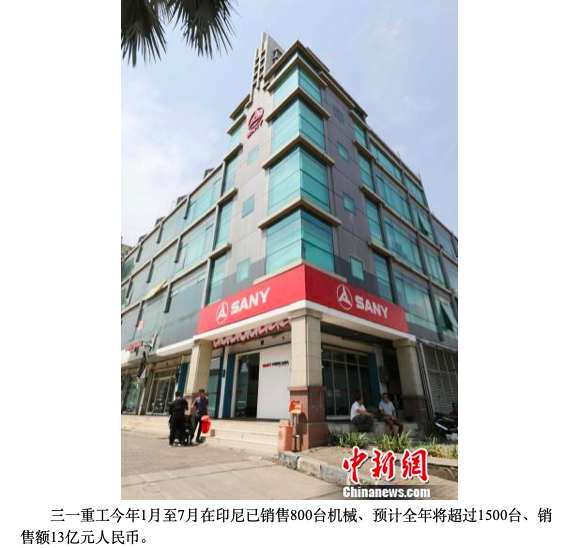 身为三一重工印尼合资公司董事长的张照强介绍说,2016年他到任当年,三一重工印尼市场销售250台机械,次年增至522台、2018年达1100台,今年1月至7月已销售800台、预计全年将超过1500台、销售额13亿元人民币。