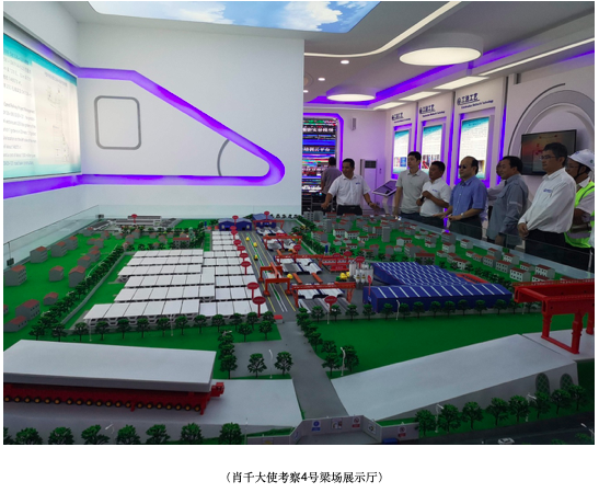 肖大使先后考察了10号隧道、德卡鲁尔动车所、4号梁场、1号梁场等建设现场,听取中国中铁、中国电建项目负责人情况汇报。肖大使充分肯定项目建设取得的新进展,要求中方建设团队抓住旱季黄金施工期,加快推动项目建设,不忘初心,牢记使命,攻坚克难,安全、高质、高效推进项目建设。