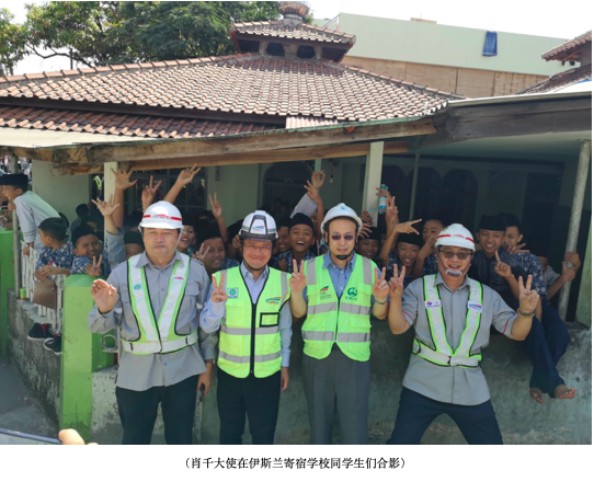 肖大使还走访了位于万隆市郊、即将为高铁建设让路搬迁的伊斯兰寄宿学校,同学生们互动交流。同学们欢声笑语,纷纷表示热烈拥护学校搬迁,期待雅万高铁早日建成通车。
