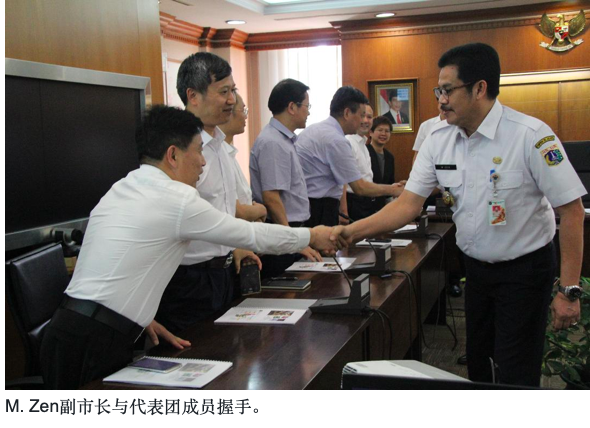陪同M. Zen副市长接见代表团的有雅加达市西区政府的各部门,包括人口和民事登记,住房,环境,经济,教育等官员。株洲代表团由除毛腾飞代表团团长外,还有周维仁,刘海滨(音译)等人。双方就发展问题交换了意见和信息,包括将废物银行应用于基于新可再生能源(EBT)的大规模运输设施之议题。