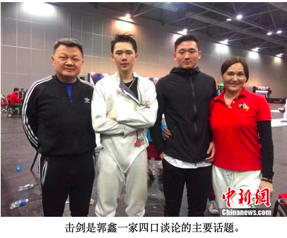 “击剑是我们一家四口的主要话题,我的两个儿子都喜欢击剑,也经常一起参加比赛。”美籍华人郭鑫和爱人陪着19岁的大儿子郭世聪来到山西,参加全国青运会。