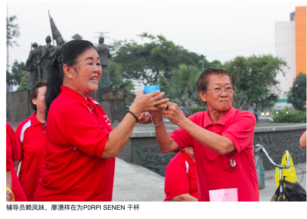 在这儿要特别郑重介绍的就是 SENEN地区的PORPl ( PERSATUAN OLAHRAGA PERNAFASAN) 太极拳团队,约3O位队员,每日天还未亮他们都已陆续汇集在SENEN TANAH TlNGGl雅京中区,8条火车轨道乘客出口处—块小广场上,认真地操练太极气功,在辅导员崔梅华,赖凤妹,廖湧祥的积极带领下,这支短小精桿的太极气功团队坚持不懈,顽强挺立地走过了第27个年头,他们就像岩峯中生根的—棵松,没有肥沃的土地,並在特殊的环境里,风风雨雨,朴华无华地延续着中华文化的武术精粹。
