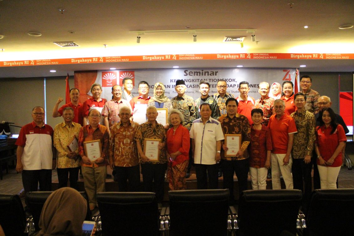 【本报讯】印尼华裔总会邀请当前印尼政要前高官他们是:印尼资深经济专家AnwarNasution博士、印尼PelitaHarapan大学教授JohanesHerlijantoMSi.PhD.印尼国家情报高等学院教授Dr.Drs.KrisnoLegowoMsi.印尼华裔总会副总主席黄印华硕士主讲发表他们对“中国崛起、一带一路对印尼的影响”主题的看法与观感。