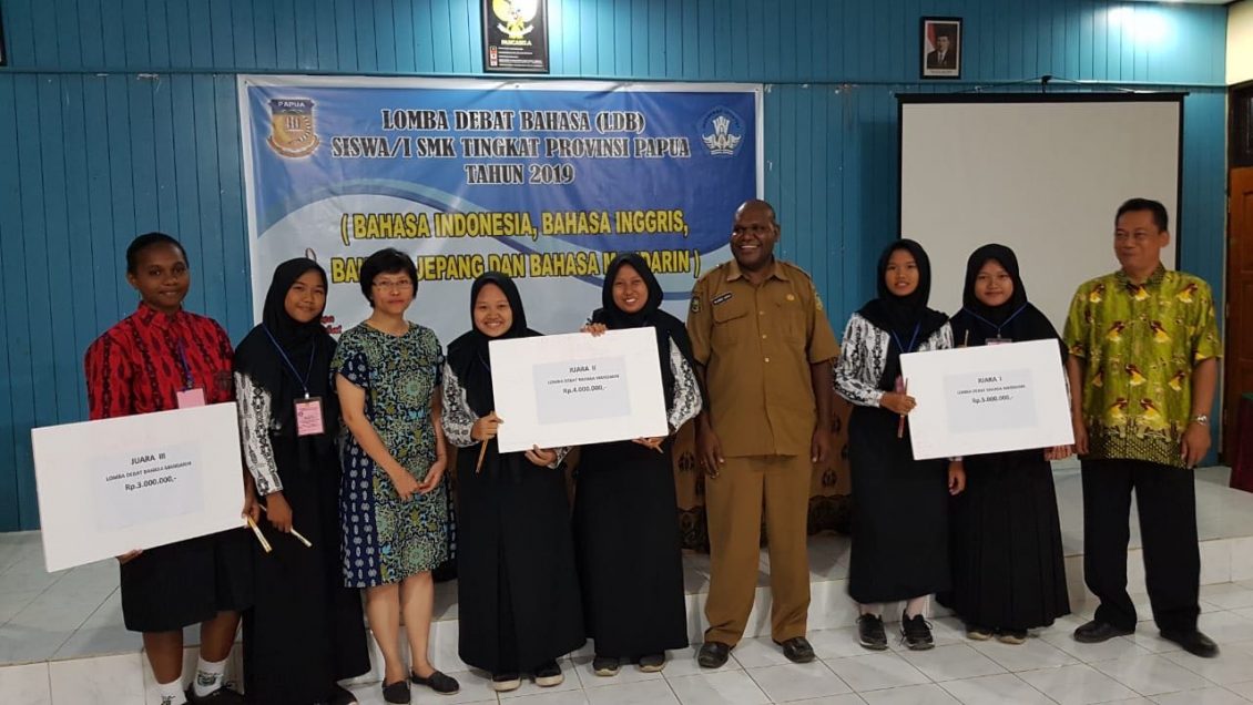 2019年8月13日巴布亚中专生辩论赛首次在巴布亚省教育厅教育质量保证机构举行。此次比赛涉及的的语言有印尼语、英语、汉语和日语。参加此次比赛的学生共30人,其中参加汉语比赛的有6人。雅加达华文教育协调机构(简称“雅协”)副秘书长兼联络交流处主任余文琼代表雅协受邀出席此次活动并担任此次活动的总监,赛后余文琼代表雅协与巴布亚省教育厅就双方的合作进行深入的交流。