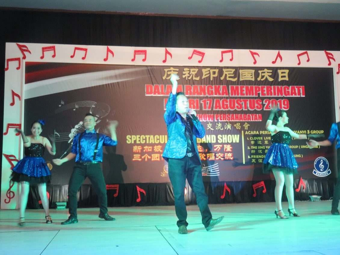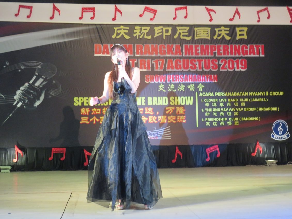 由雅加达幸运草乐唱团(Clover Live Band)与加坡新悦乐唱团(The Sing YayYayYay Group)和万隆友谊乐唱团.(Friendship Club) 联办的庆祝印尼国庆74周年的歌友歌唱交流会於8月15日晚在雅加达金莎酒楼圖满成功举行后,於8月17日晚在万隆大东方酒楼宴会厅举行第二场歌唱交流会获得理想的成果。