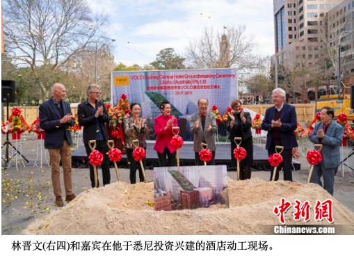 中新网悉尼8月29日电 (记者 陶社兰)移民澳大利亚20年,经过6年的呕心沥血,林晋文在澳大利亚投资的第一个地产项目,终于在他70岁生日之前破土动工。他说:“70年来,可以说,我是和新中国同呼吸共命运。从一穷二白到走向富裕,翻天覆地的变化,我70年的人生,也是新中国发展的缩影。”