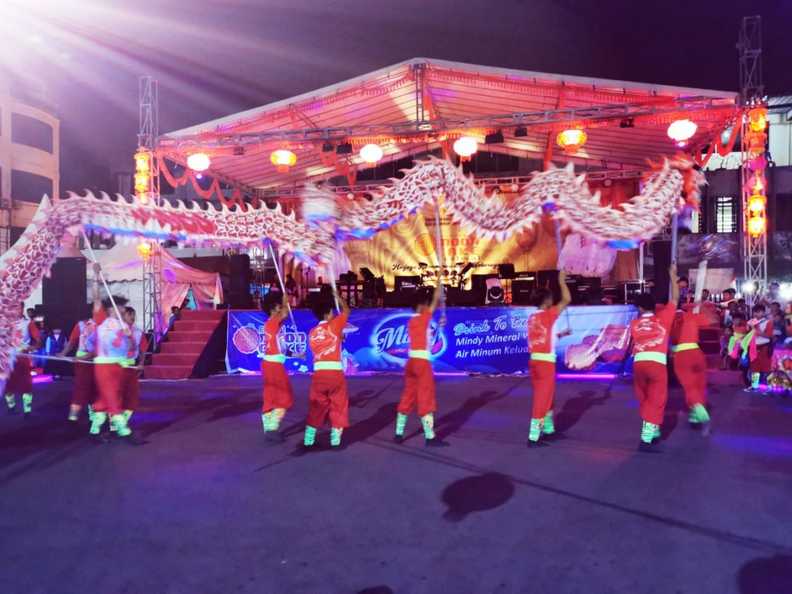 副市长受邀上台致辞时说,因为市长哈芝·莎鲁尔先生(H.Drs.Syahrul)临时有事所以由我来代表出席今晚的盛会,他也再三交代,今晚邀请大家前来不是要求捐献钱财,只要大家对今晚的演出给与热烈的掌声就够了;副市长接着说,我们多拍掌不仅是对台上演出的赞赏同时也对我们大家的身体有益,因为能促进血液循环。她也他透露一个好消息,那就是明年2020年1月25日将是农历新年,我们政府将把庆祝范围扩大到国泰戏院街(Jl.Teuku Umar),时间也提前到1月初开始庆祝,预计到时的参加人士会多达3000人,希望大家共同合作力促其成,谢谢大家的支持。