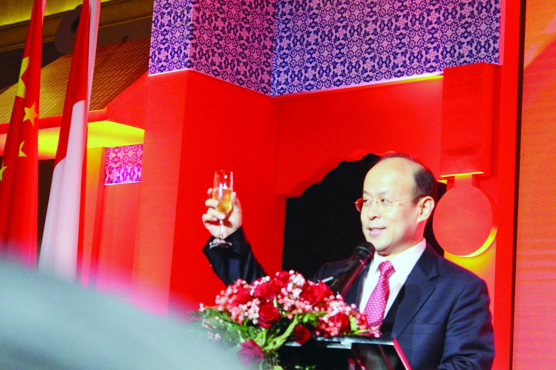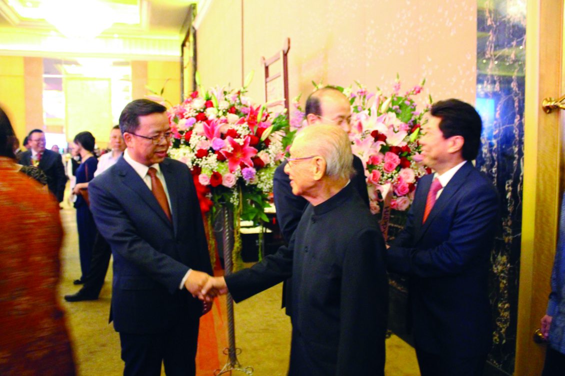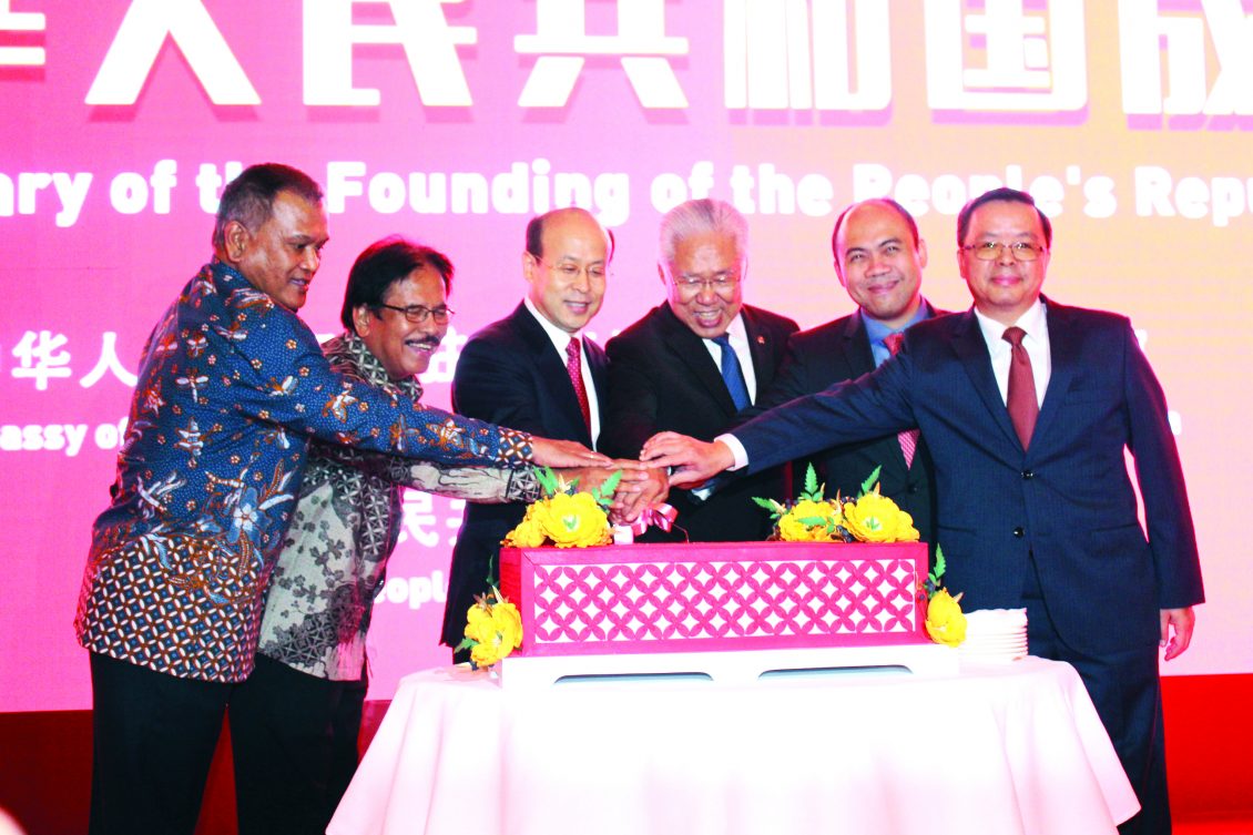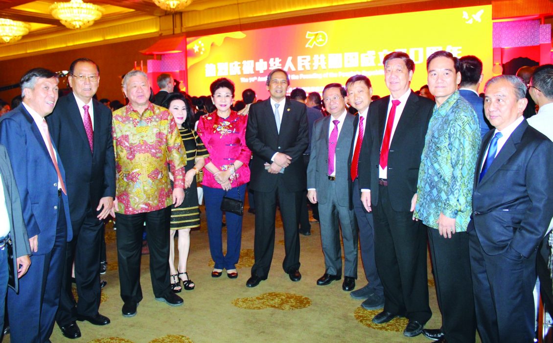 【本报讯】中华人民共和国成立70周年庆即国庆日于26日晚上,在雅加达豪华慕丽雅大酒店大厅隆重举行,我国贸易部长卢友英、土地与空间规划部部长索菲安(SofyanDjalil)及其他高官、知名人士、各国使节代表,社会名流、华社精英、贤达等均热烈出席。