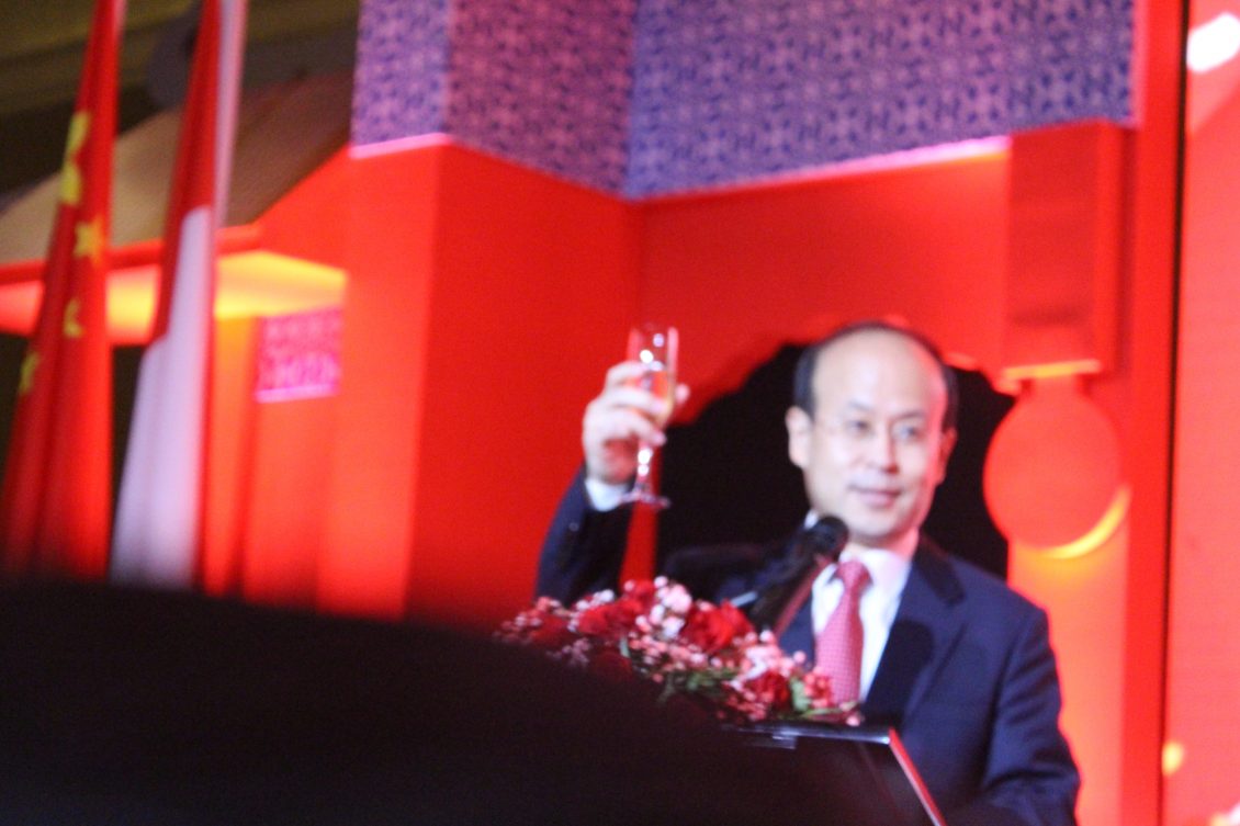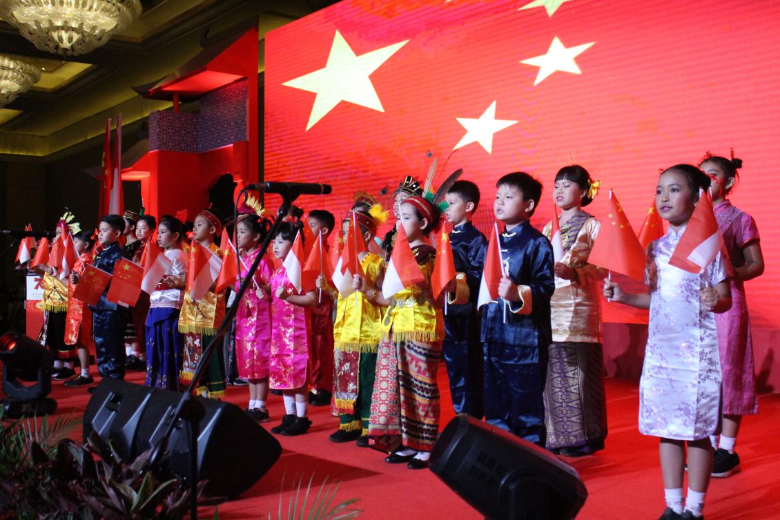 现在我提议,让我们共同举杯,为庆祝中华人民共和国成立七十周年,为中国和印尼两个伟大国家的繁荣富强,为中印尼两国人民的友谊万古长青,为中国印尼、中国东盟关系更加美好的明天,