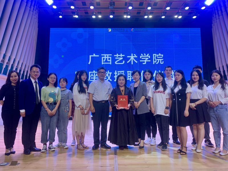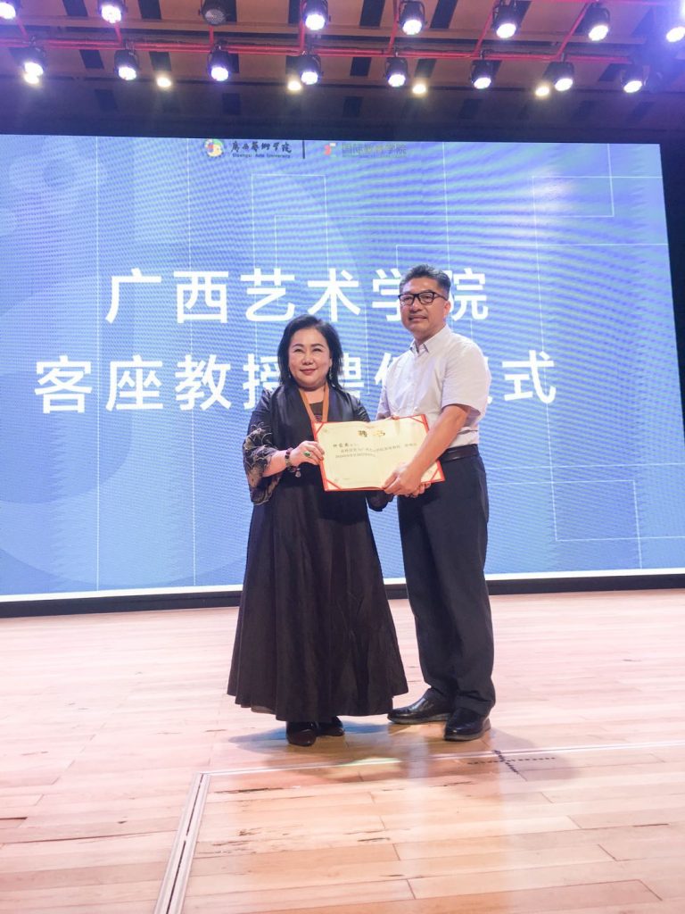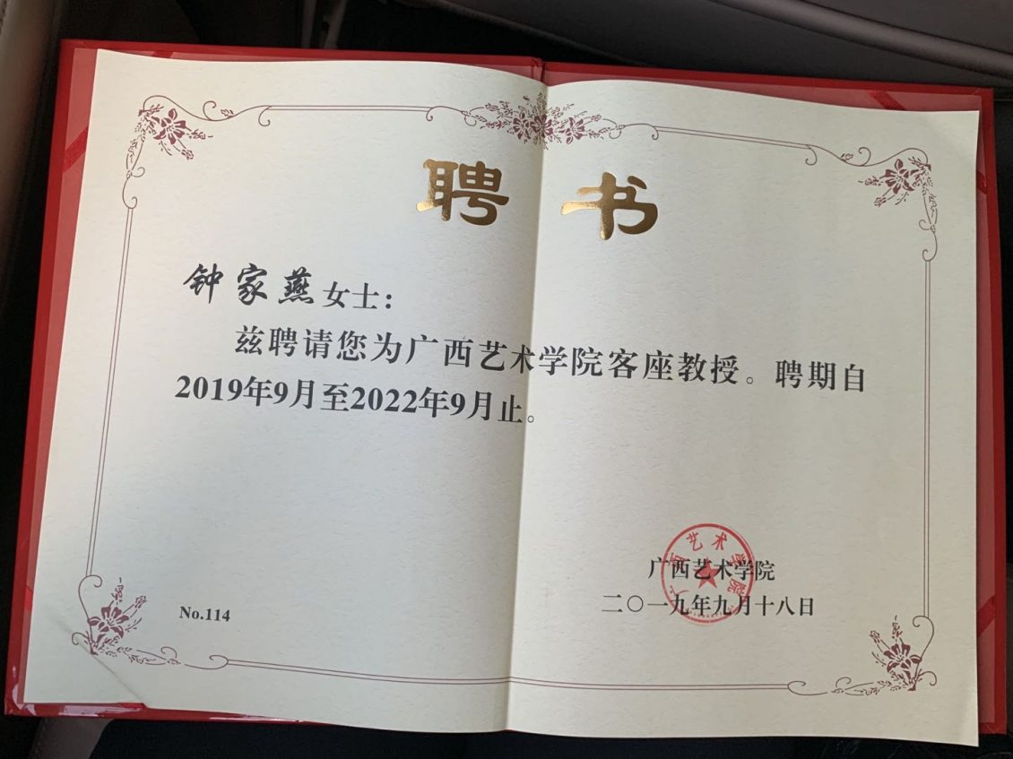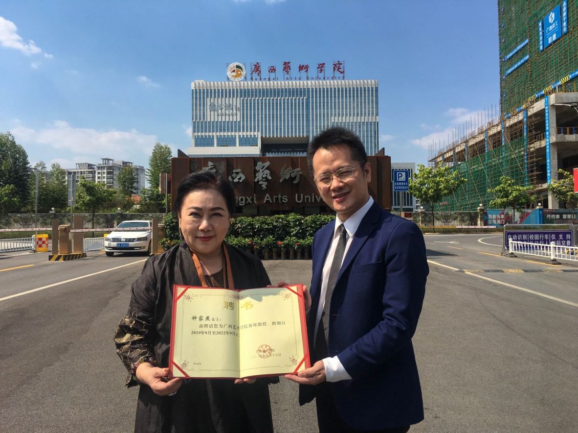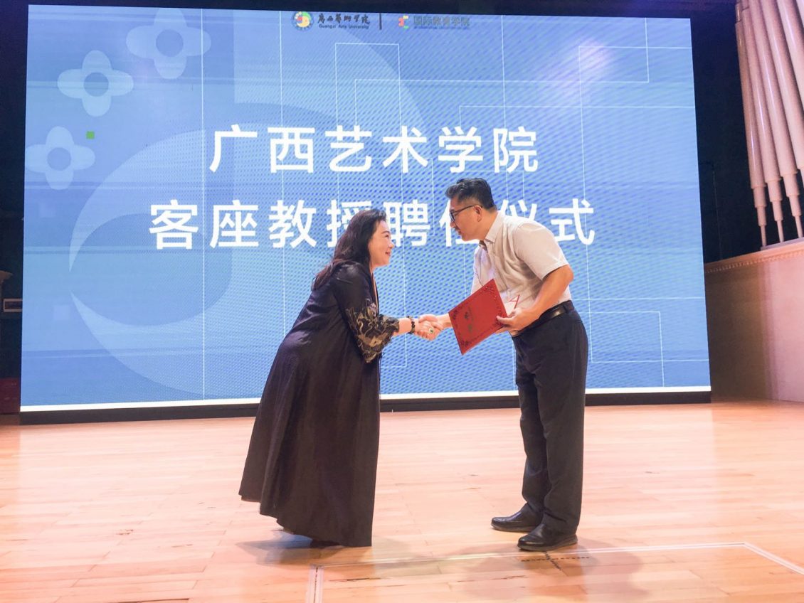 首先,由韦俊平副校长主持颁发证书给钟家燕为广西艺术学院客座教授的仪式。
