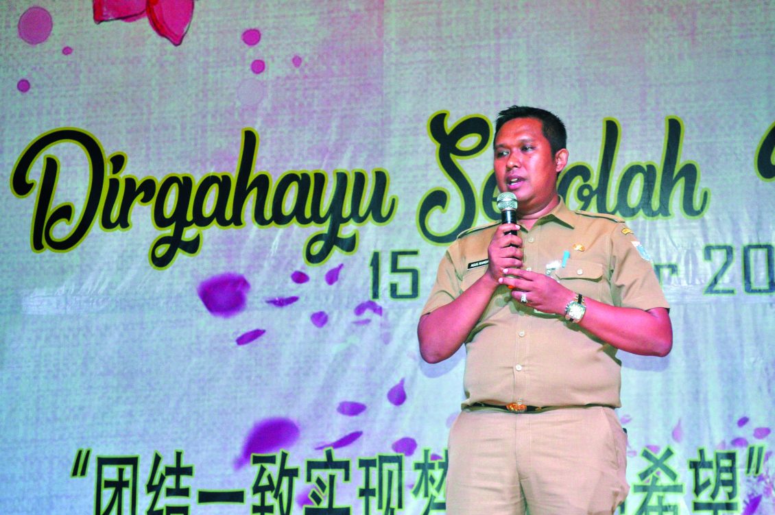 位於雅加達西區曾加連鎮棕櫚園區的巴中三語學校於10月15日 (週二) 早九時在富麗堂皇的大禮堂內舉辦洋溢青春氣息的校慶聯歡會。三語學校的幼兒、小學和初中師生,家長、校友以及雅京西區教育局代表等近600人參與出席。其中有:巴中三語學校基金會輔導主席余增壽和黃瑞泉、許世良,巴中三語學校主席林可彬;校友石舟生、廖芝萬、侯國昌、黃威貴、林志煌、林鋒昇、陳美致、何福妹、林珠花、巫頌寰,元老教師林長奮,以及巴中股份有限公司總經理湯國鑫。巴中校友會林鳳英主席因出國未克出席。
