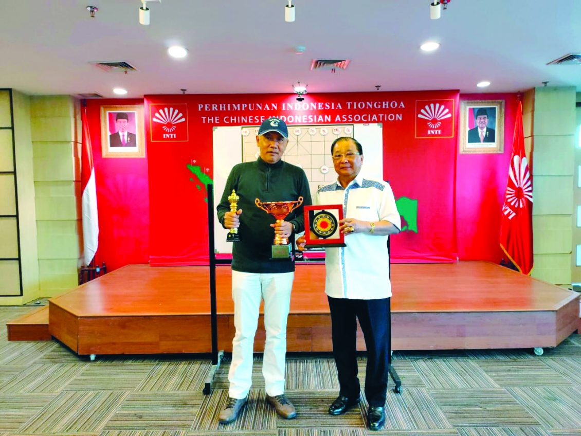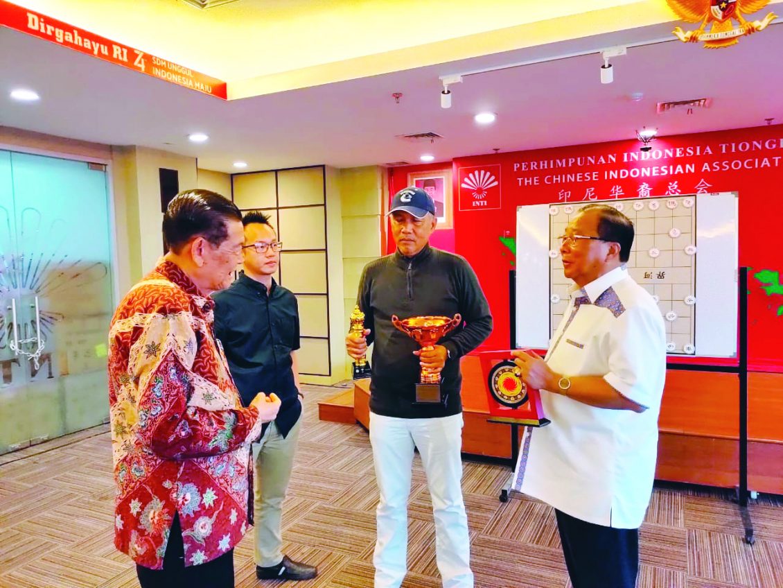 2019年10月17日,印尼象棋总会伊万·士笛亚万(IWAN SETIAWAN)先生,征战成都熊猫杯,加拿大魔力红世界杯,胜利凯旋归来,受到了印尼象棋总会黄德新总主席,组织部李俊龙主席,副秘书长连绍棚的热烈欢迎,在席间伊万先生向黄总主席报告参赛经过:2019年9月18-22日参加了在中国成都举办的一带一路“四川航空、熊猫之路”杯,荣获季军奖,并获得成都棋院赠送的太阳神鸟奖状。