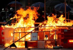 示威者朝警署投掷汽油弹