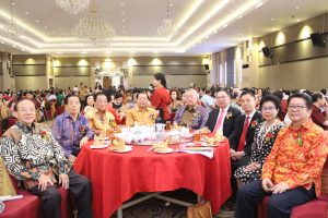 【本报讯】印尼茂物客属联谊会第二届理监事就职暨银会第三届第六次聚餐联欢,于27日中午11时,在雅加达Kunir街FortuneStar大酒家盛大举行。印尼客属联谊总会总主席叶联礼、印尼广东社团联合总会总主席即印尼客联总会辅导委员会主席曾季瑾伉俪、印尼梅州会馆创会主席黄德新、会长陈志明伉俪、印尼客联总秘书长袁霓、副秘书长杨健昌伉俪、雅加达叶氏宗亲会主席叶纪鳌以及客联总会其他主要领导:蓝德良吴宏燕伉俪、陈嘉佳伉俪、卢明光、熊国珍以及苏甲巫眉客属联谊会代表等均踊跃出席,估计有近乎八百嘉宾热烈与会,主要在于为当选新届主席茂物知名女强人叶辉云,祝贺并祈福,相信在她精明专注地领导下,业务势必更上层楼。